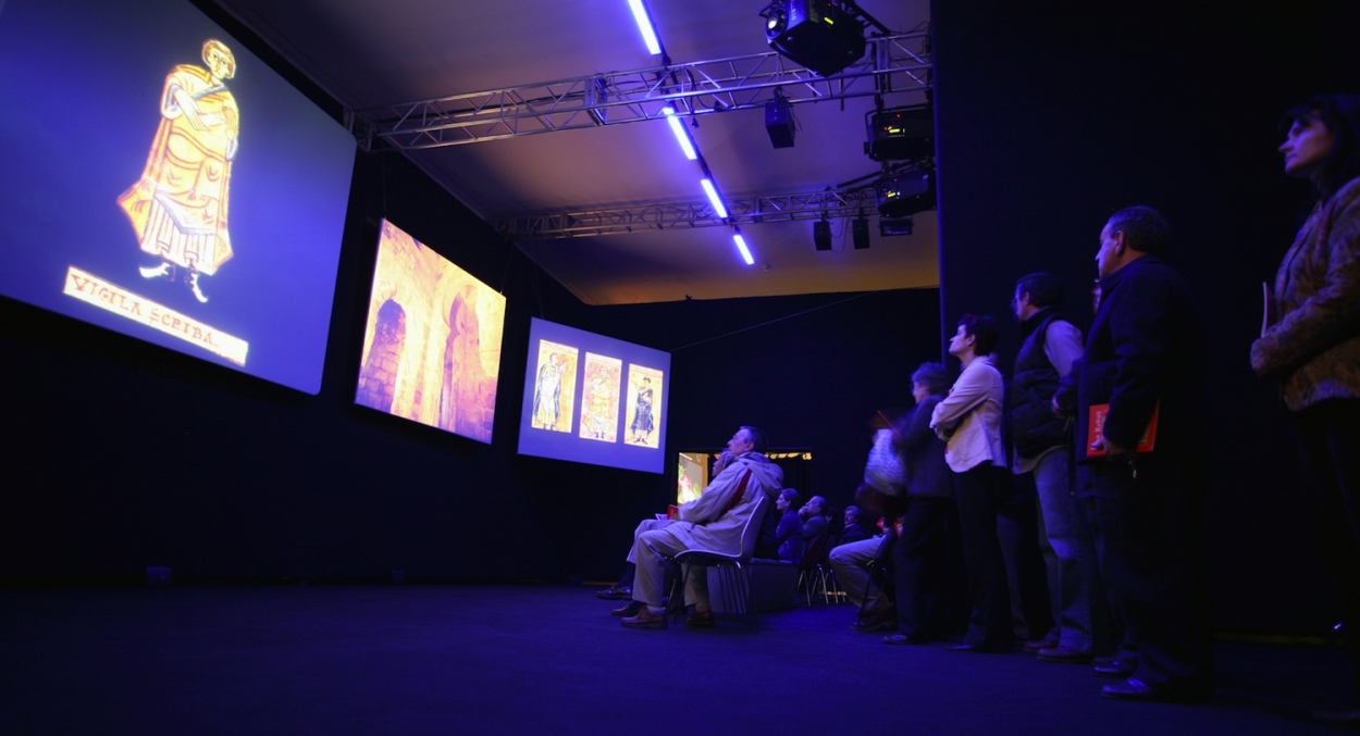 - Teatro virtual/ holografía Arca de San Millán. Integración de imagen infográfica en 3D sobre la pieza real, representando la reconstrucción decorativa del arca.