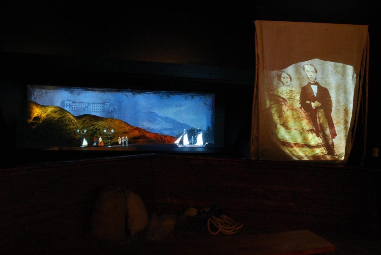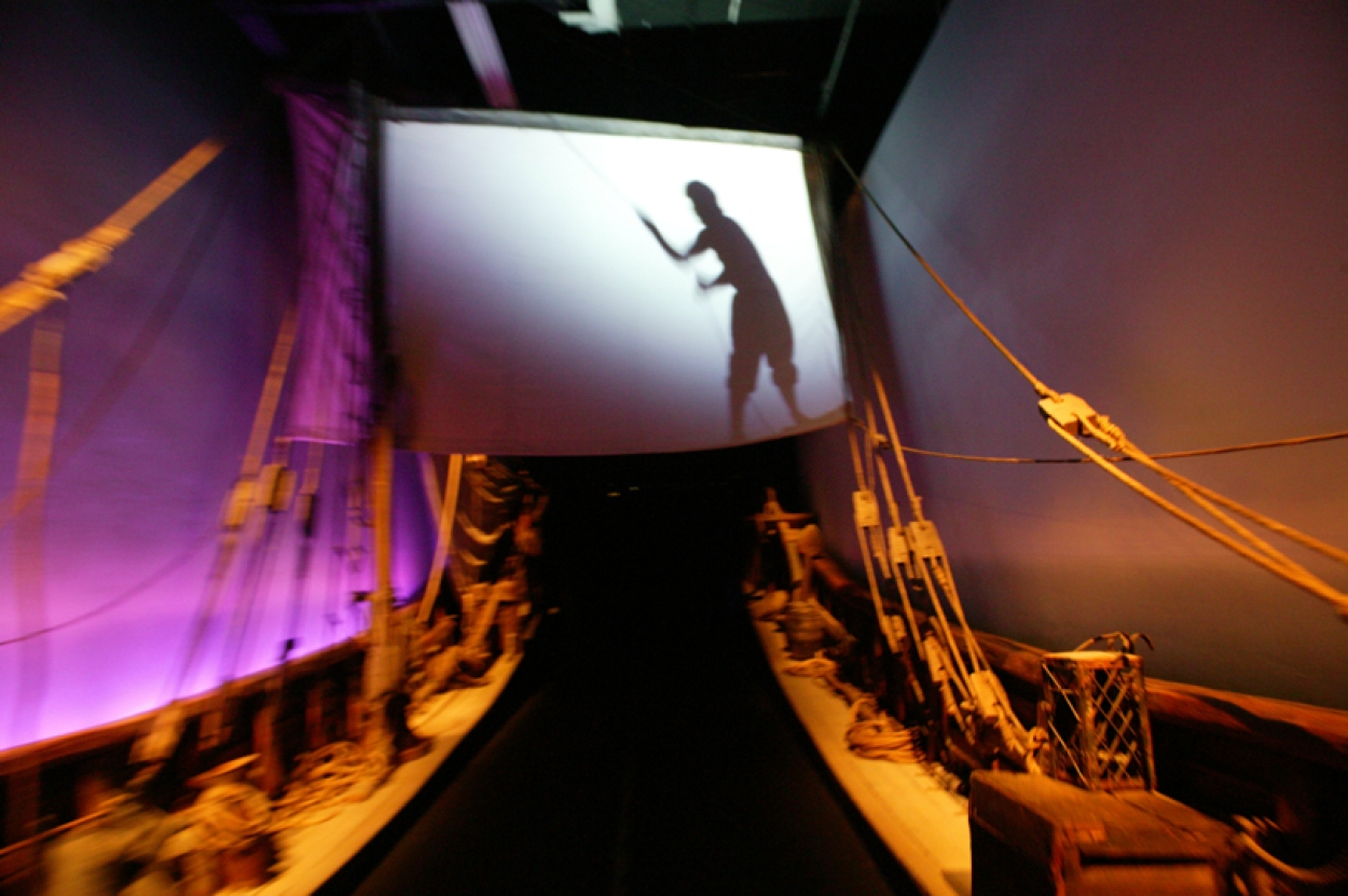 "DESCUBRIENDO LAS ISLAS" Pavilion: audiovisual show for a jouney on carriage. Projections, lighting, sound, staging, fx ?