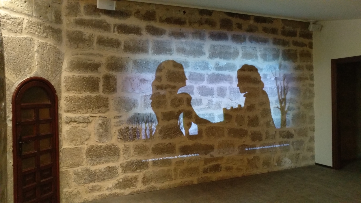 AV Asesinato Mencía Sarmiento. Animación de sombras. Proyección sobre muro de piedra.
